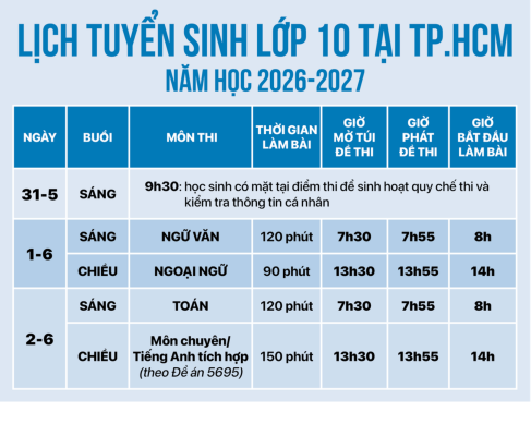 Chi tiết lịch thi lớp 10 tại TP.HCM 2026