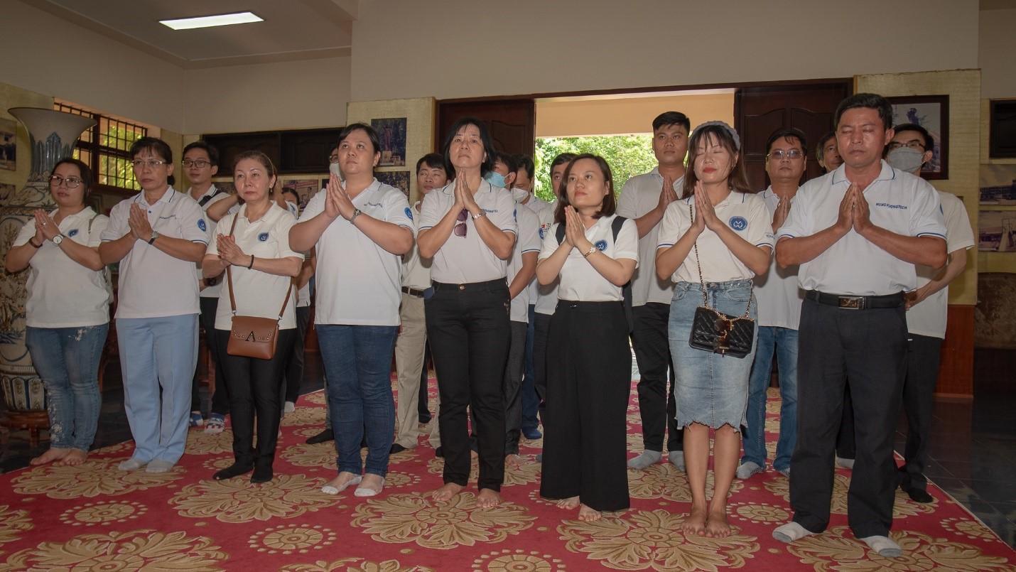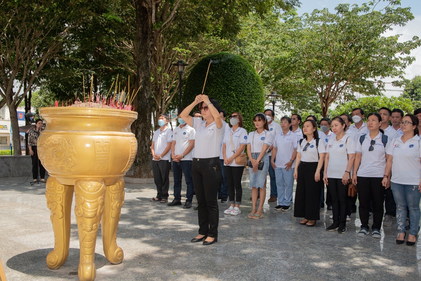 Cấp ủy, Ban Giám hiệu và Cán bộ – Giáo viên – Nhân viên của trường dâng hương, nghe thuyết minh tại tượng đài anh hùng Võ Thị Sáu