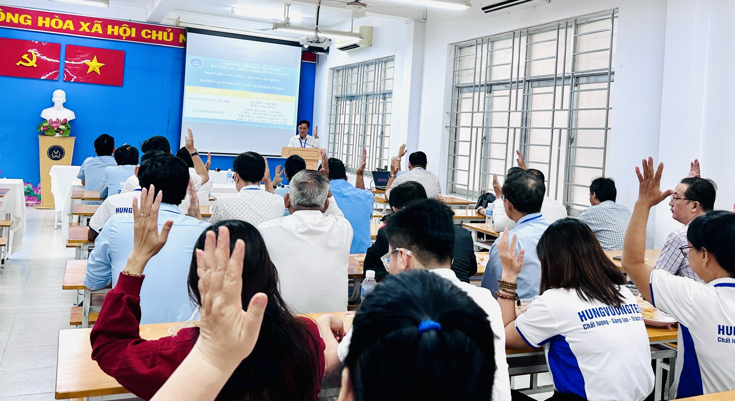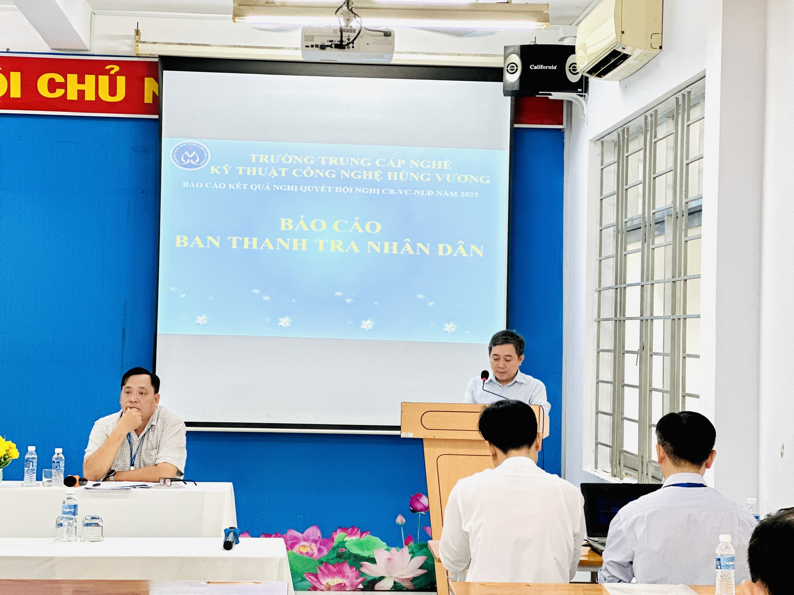 Hội nghị viên chức – người lao động năm học 2025 – 2026 của Trường TCN Kỹ thuật Công nghệ Hùng Vương kết thúc thành công tốt đẹp. Với các kết quả: Bầu ra Ban thanh tra nhân dân nhiệm kỳ 2025-2027 ; Thông qua Nghị quyết với các nội dung: công tác chính trị tư tưởng; công tác thi đua; đồng thời kêu gọi toàn thể CBVCNLĐ phát huy những thành tích đã đạt được, phấn đấu thực hiện thắng lợi nhiệm vụ chính trị, tích cực đóng góp công sức và trí tuệ xây dựng Nhà trường ngày một vững mạnh.