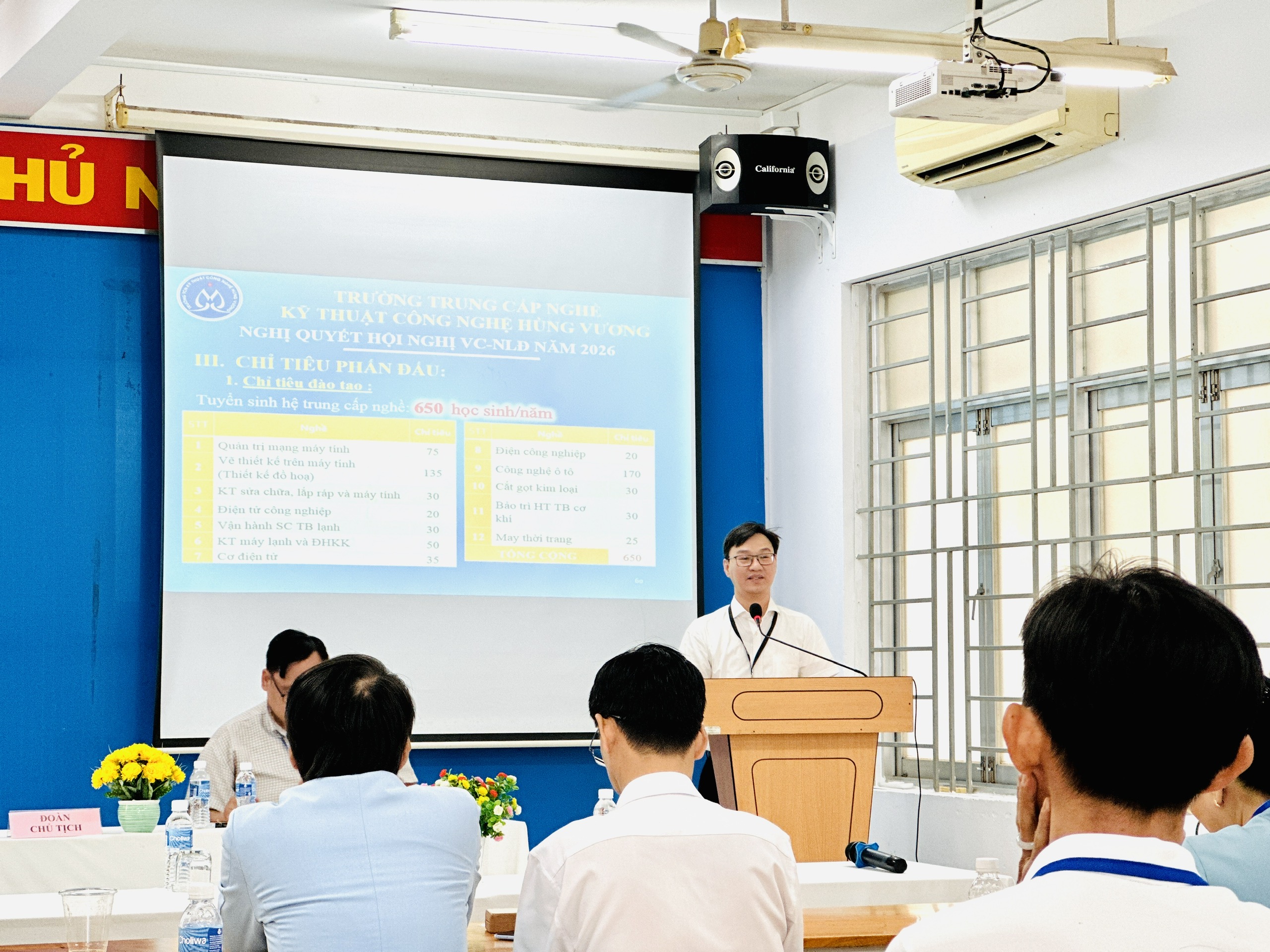 Sáng ngày 29/11/2025 Trường TCN Kỹ thuật Công nghệ Hùng Vương đã tổ chức Hội nghị Viên chức – Người lao động năm 2026 tại phòng Hội trường.